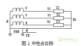 1.2 三相不平衡且中性線斷線、未接好或阻抗較大導致中性點位移